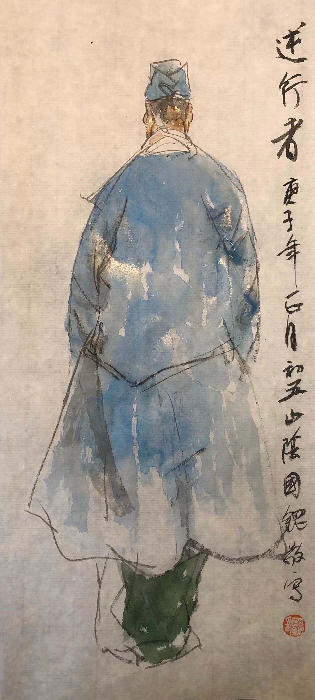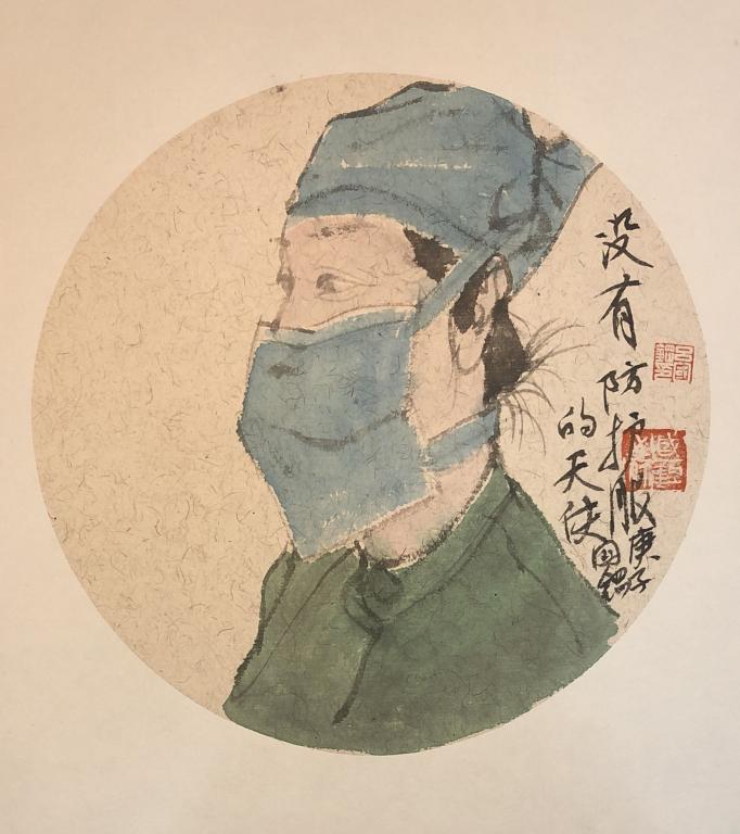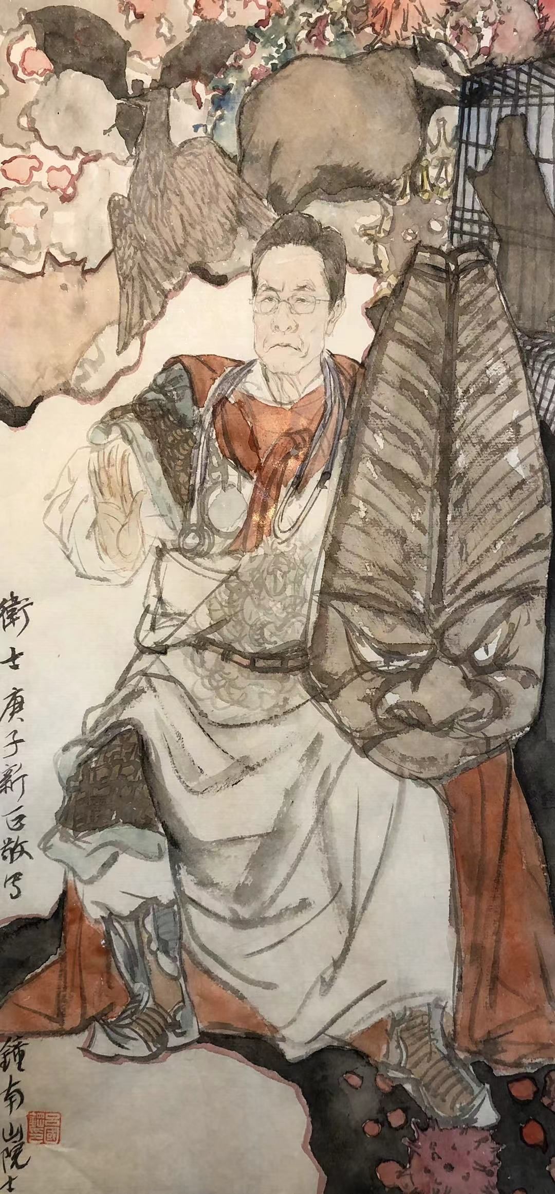 他的这些画如速写,言简意赅,短小精悍。如“逆行者”,表达一个背影,当他(她)直面危难时,给我们的那种力量,如坚山盤石,这是英雄的象征!钟南山院士令人感动敬仰,八十五岁的高龄还一直坚守在一线战场,是人民健康的真正卫士。在吕国钢心目中是民族的英雄,他小时候经常喜欢画民族英雄岳飞,然后把钟院士也画成岳飞的样子,铁甲盾牌,一只手警告人们不要食用野生动物,一手持盾,保护人民生命健康安全!