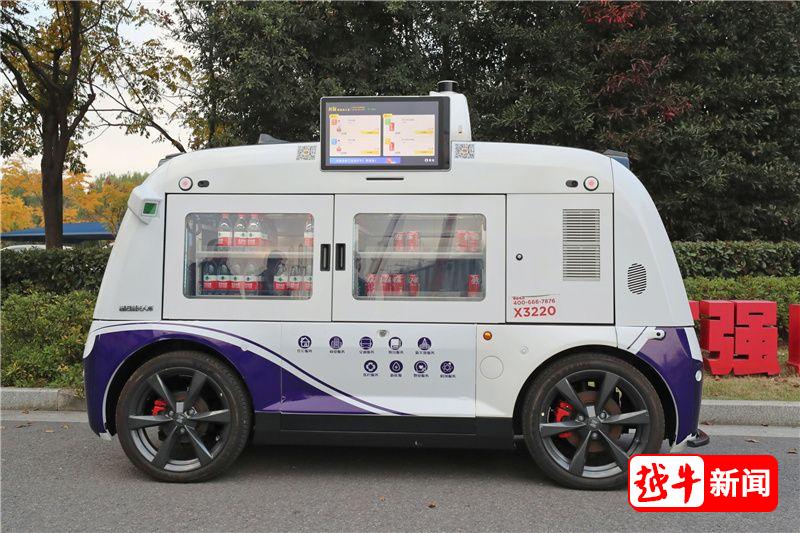 只见一辆无人驾驶的白色小车在校园内穿梭,学生可通过扫码自助购买车内的饮料,引来不少学生好奇尝鲜。