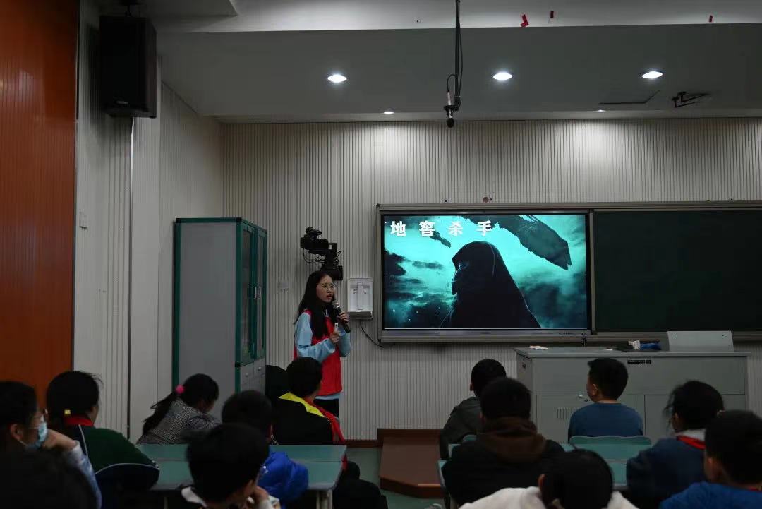 在准备的干冰系列实验开始之前,小老师向同学们介绍了社会热点“碳中和”概念以及二氧化碳的来源、危害,减少二氧化碳产生的措施等,普及了环保知识。随后从西游记中的“仙境”现象引出干冰,同学们在图片中发现了穿帮镜头,原来是干冰机在工作。