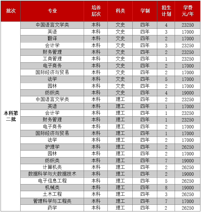 只面向浙江省招生,共有5个专业参与招生。其中面向普通类平行计划招生280人,艺术类第二批美术类120人。