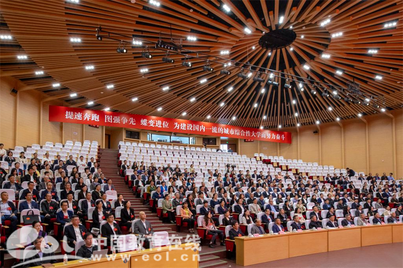 蓝图已经绘就,逐梦惟有笃行。全校党员干部和师生员工要更加紧密地团结在以习近平同志为核心的党中央周围,立足新起点、把握新要求、担当新使命,提速奔跑、图强争先、蝶变进位,全面开启跨越式发展新征程,为加快建设国内一流的城市综合性大学而不懈奋斗!