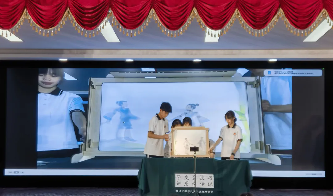 在活动现场,王坛镇中学生展示《学皮影技巧,讲虞舜传说》,一块白纸就是一方天地,一声戏腔就是一个故事,唱尽虞舜美德。