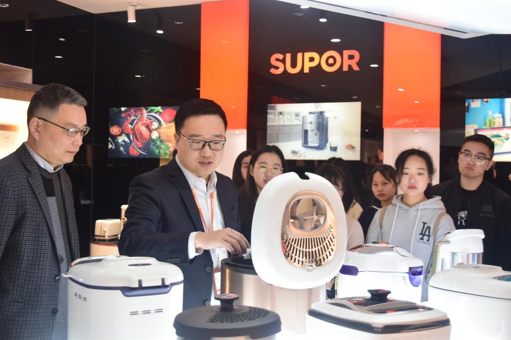 我校师生还参观了苏泊尔产品展示厅,近距离观看苏泊尔产品营销模拟场景,体验实战氛围。