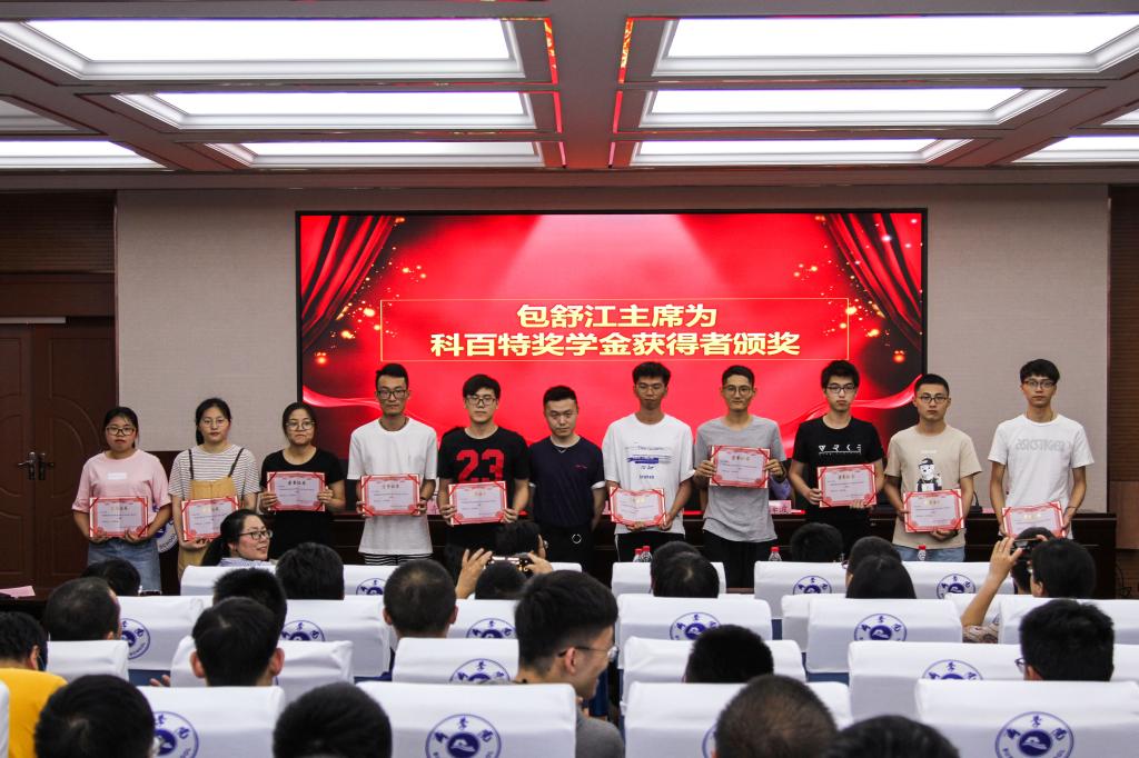 包舒江为获得第四届“科百特成长奖学金”的10位同学颁奖。一等奖获得者为刘晓辉,二等奖获得者为李国定、翁天恒、杨振华,三等奖获得者为蓝樟生、王明明、梁毅、郦颖蕾、赵钢和叶小倩。