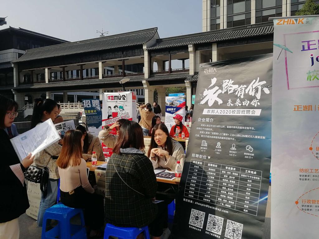 11月9日上午,我校纺织服装学院2020届毕业生专场招聘会在河西校区志廉楼大厅举行。此次招聘会共邀请了精工控股集团有限公司、宁波申洲针织有限公司、华孚时尚股份有限公司、浙江中国轻纺城集团股份有限公司纺织产业大数据中心、中纺院技术研究院有限公司等86家用人单位参与招聘,提供了外贸类、服装设计类、技术制造类等1200多个相关岗位。186名2016级参与招聘的学生们手持精心准备好的简历,满脸自信地穿梭于人流之中,积极与招聘人员交流,主动了解用人单位的工作环境、工作岗位和待遇等情况。