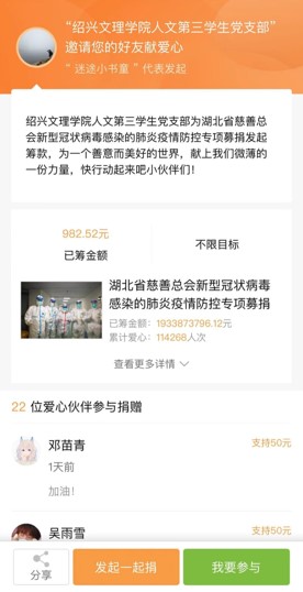 1月30日,学院党委通过网络发起募捐倡议,各党支部和班团支部踊跃捐款,发起倡议1天时间后,向湖北省慈善总会的新冠状病毒防控专项项目捐款16039.94元,捐款还在持续进行中。