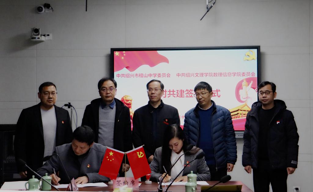 12月11日,数理信息学院党委和稽山中学党委在南山校区1号楼415会议室举行党建结对共建签约仪式。校党委委员、组织部长宣绍龙,稽山中学党委书记、校长宣方军出席仪式。