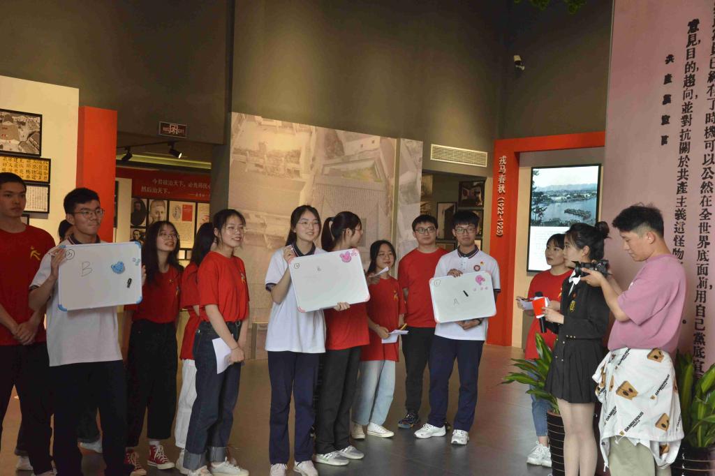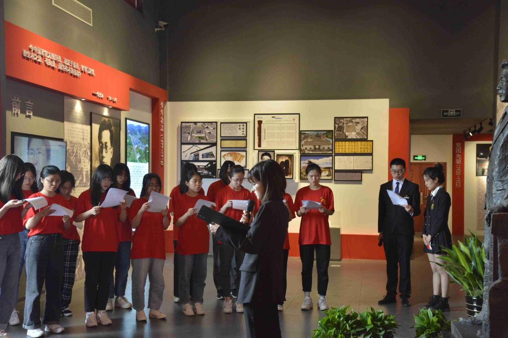 参观结束后,大家开展了丰富多彩的团日活动。现场进行了团课展示,我校马克思主义学院学生向在场师生讲述俞秀松的革命事迹和优秀精神品质,朗读了俞秀松“红色家书”,宣讲了习近平总书记考察清华大学讲话精神,大家还将此次学习的感言粘贴在活动主题板上。活动现场还举行了百年团史知识竞赛。