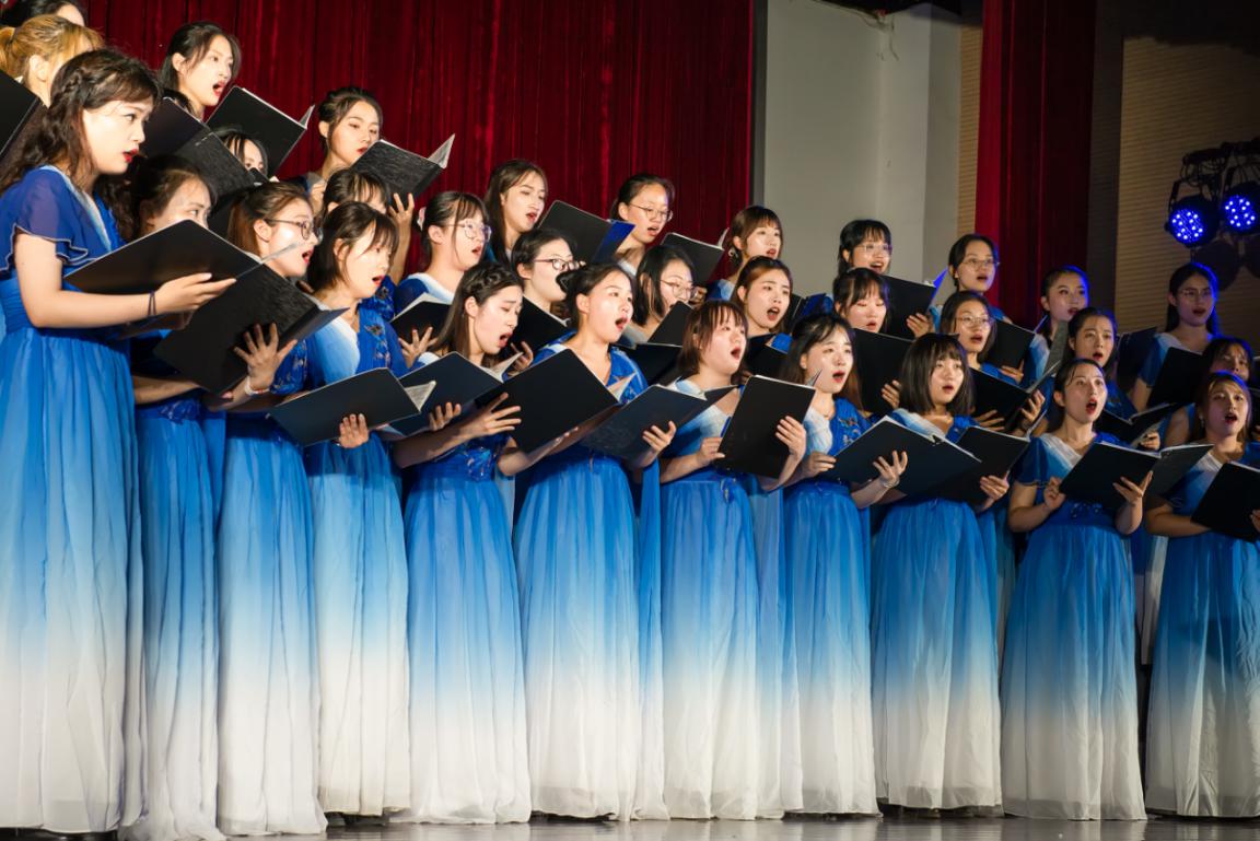 演出开场,悦音合唱团为大家带来经典红歌《映山红》,重回那段“夜半三更盼天明,寒冬腊月盼春风”的岁月,感受“岭上开满映山红”的喜悦。“怕你飞远去,怕你离我而去,更怕你永远停留在这里”,一首《大鱼》,让人不禁沉醉在音乐故事中。悦音合唱团是以学前教育专业学生为主要成员的专业技能社团,以学带练、服务同学提升艺术素养、打造精品团队为主要目标,曾获得“礼赞新中国•奋进新时代”全校大合唱比赛二等奖的成绩,目前正在准备浙江省大学生艺术展演活动。