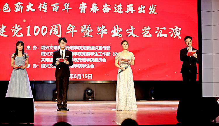 征途逐风雨,青春奏长歌,正值六月花开季。6月15日晚上,以“红色薪火传百年,青春奋进再出发”为主题的元培学院庆祝建党100周年暨2021届毕业文艺汇演在国际文化交流中心报告厅举行。学校副校长陈均土,学院领导班子成员,各分院党总支书记、相关职能部门负责人和500多名毕业生们一同参加晚会。