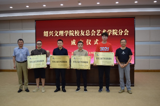 会上,吕国钢、赵刚、张晨风、施华锋、张继钟、王剑锋、沈东海、唐欢军、陈雷、陆海洋等8位校友向母校捐赠了书画作品。浙江乐拓纵横文化艺术发展有限公司、绍兴面对面艺术培训学校、温州兴贵汽车用品有限公司、绍兴品玺装饰设计有限公司、绍兴市柯桥区巴音艺术学校、上虞童画天香艺苑、杭州哲音文化创意有限公司、绍兴铜雕艺术馆等8家校友企业被授予“校友企业艺术实践基地”,王剑锋、童铧彬、杨春燚、朱莉、许金辉、陆海洋、沈国平、吕国钢等8位校友被聘为学生“艺术人生导师”。