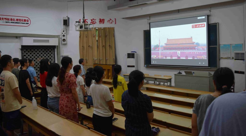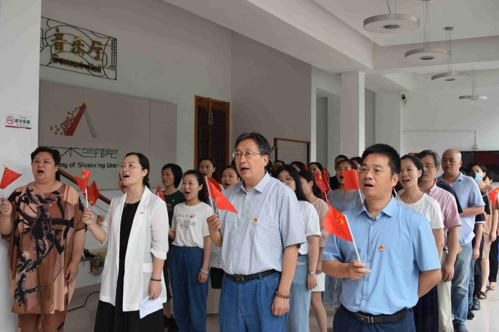 全体教工党员重温入党誓词,之后齐唱《没有共产党就没有新中国》,慷慨激昂的大合唱唱出了老师们为党育人、为国育才的壮志豪情。