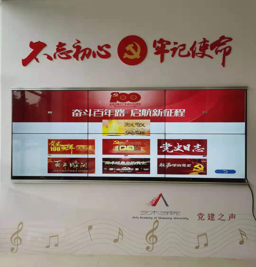 学院“有声党建墙”正式上线,“有声党建墙”配置了党建触摸屏,学院师生可以手动触学习“艺心向党”“党章”“百年党史”“平语近人”“人大会议”等内容。