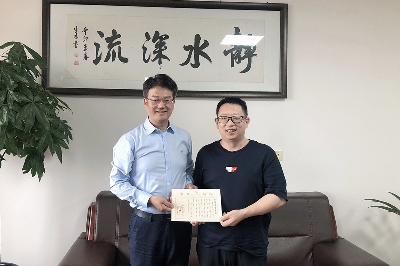 机械与电气工程学院党委书记陈文平代表学院接受捐赠,并向浙江国祥股份有限公司董事长陈根伟颁发捐赠证书。浙江国祥股份有限公司总经理马吉尧、机械与电气工程学院党委副书记林国旗等参加捐赠仪式。