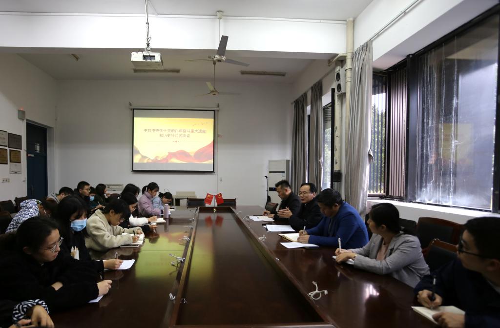 11月17日下午,校党委副书记张宏赴联系党支部、联系班级宣讲党的十九届六中全会精神,党委学工部、化学化工学院相关负责人、化学化工学院研究生党支部全体党员、高分子材料与工程181班师生代表参加。