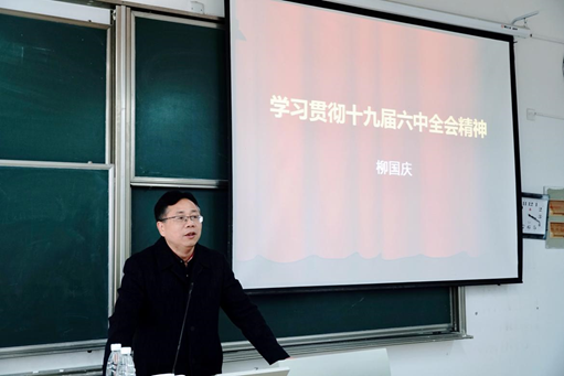 11月23日,副校长柳国庆赴教师教育学院,为师生宣讲党的十九届六中全会精神。