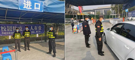 增加门岗安保力量,从严从实守好防疫第一岗。I级应急响应期间,新宇物业管理骨干亲自上阵到门岗一线,在保卫处、学工部、后勤管理处、机关党委的指导和大力支持下,以热情饱满的专业态度仔细核验每一位进校人员的“三码”,“同学您好,请出示您的健康码、行程码,请用企业微信码扫码进校。”