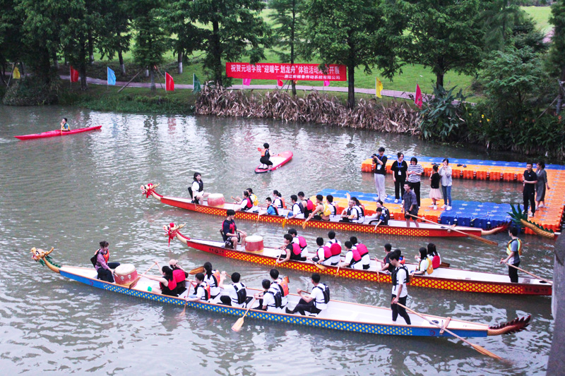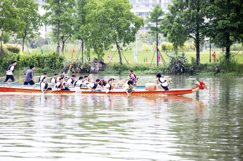 “不需要借助校外任何场地,在校园内就能体验划龙舟,这是学院为教职工提供的端午独家体验。”龙舟队教练李柏辰告诉记者,这条穿过校园的大树江,为龙舟队训练、体验活动举办提供了得天独厚的环境。”