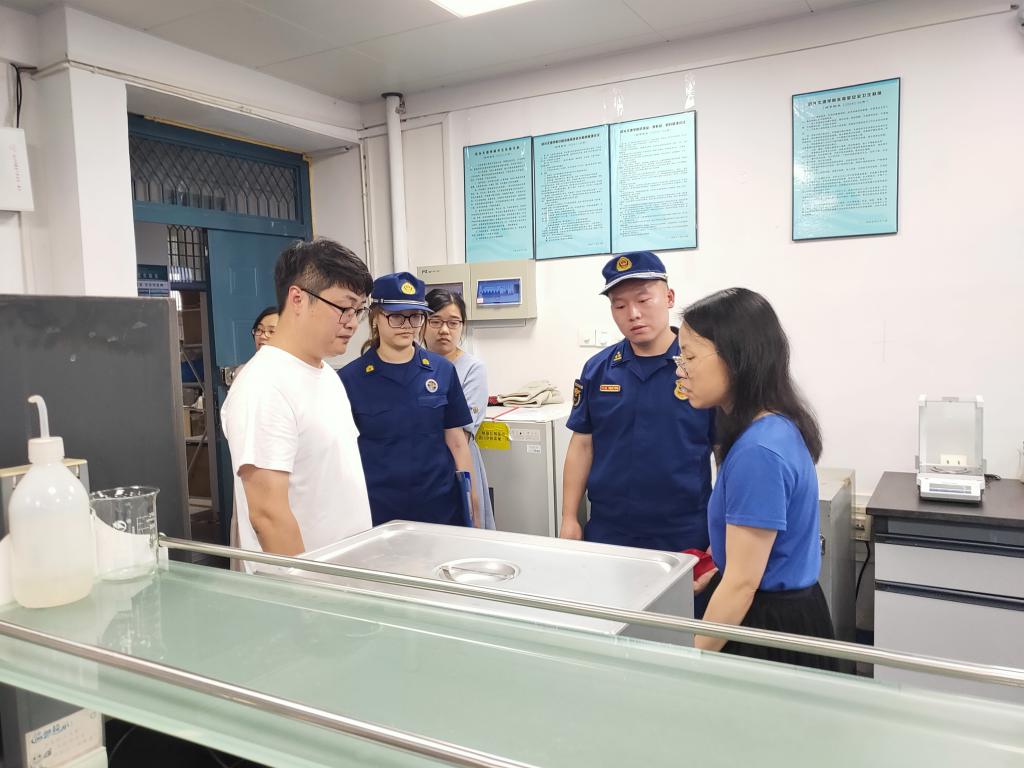 培训会结束后,开展了实验室消防安全专项检查,特别邀请了绍兴市消防救援大队骆少飞参谋来校现场检查指导。资产与实验室管理处、保卫处等相关负责人和工作人员组成检查组,重点检查了志廉楼化学化工学院、纺织服装学院的部分实验室及楼道消防安全情况,并对现场发现的安全隐患及时提出整改意见。