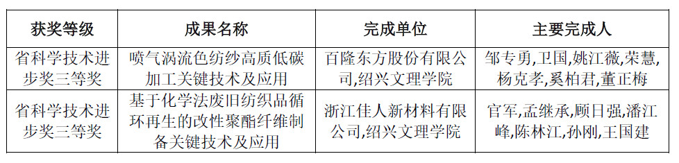 在此前公布的2021年度中国纺织工业联合会科学技术奖授奖名单中,纺织服装学院占海华教授主持的项目《聚乙烯凉感复合纤维制备关键技术及应用》和邹专勇教授参与的项目《喷气涡流7.4tex纯粘胶纱纺制关键技术及产业化》荣获科技进步奖二等奖。