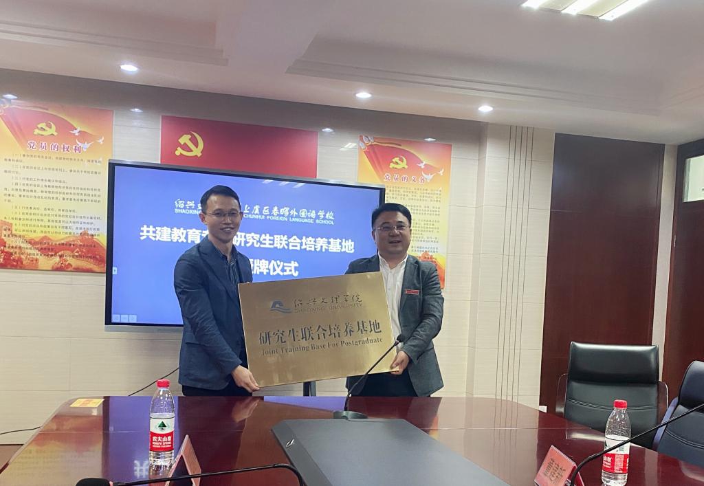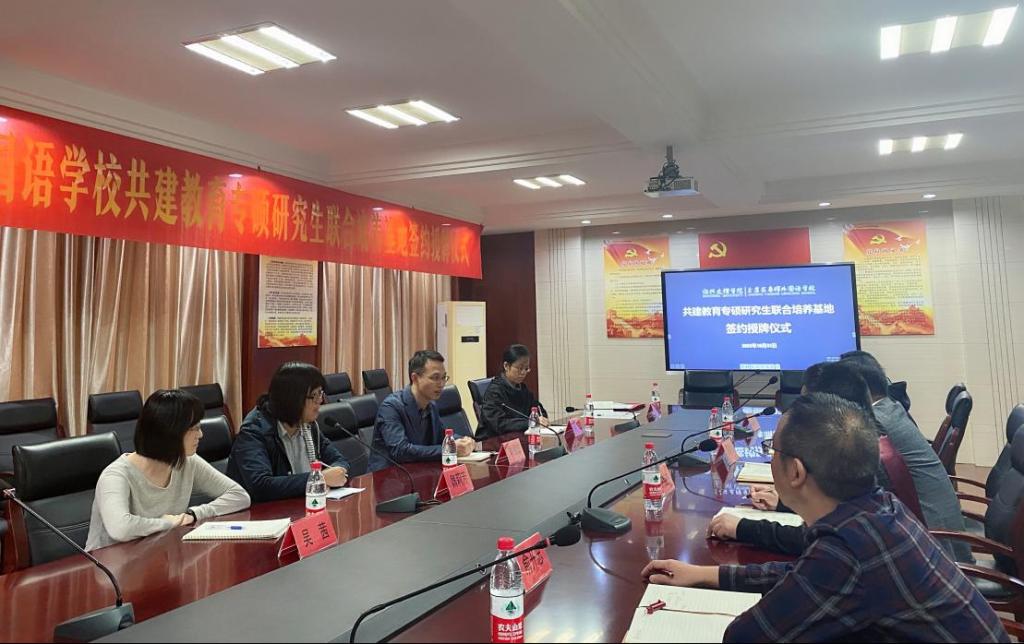 10月31日下午,外国语学院与上虞春晖外国语学校举行教育专硕研究生联合培养基地签约授牌仪式。外国语学院和上虞春晖外国语学校相关领导参加仪式。仪式由上虞春晖外国语学校教科室主任董建新主持。