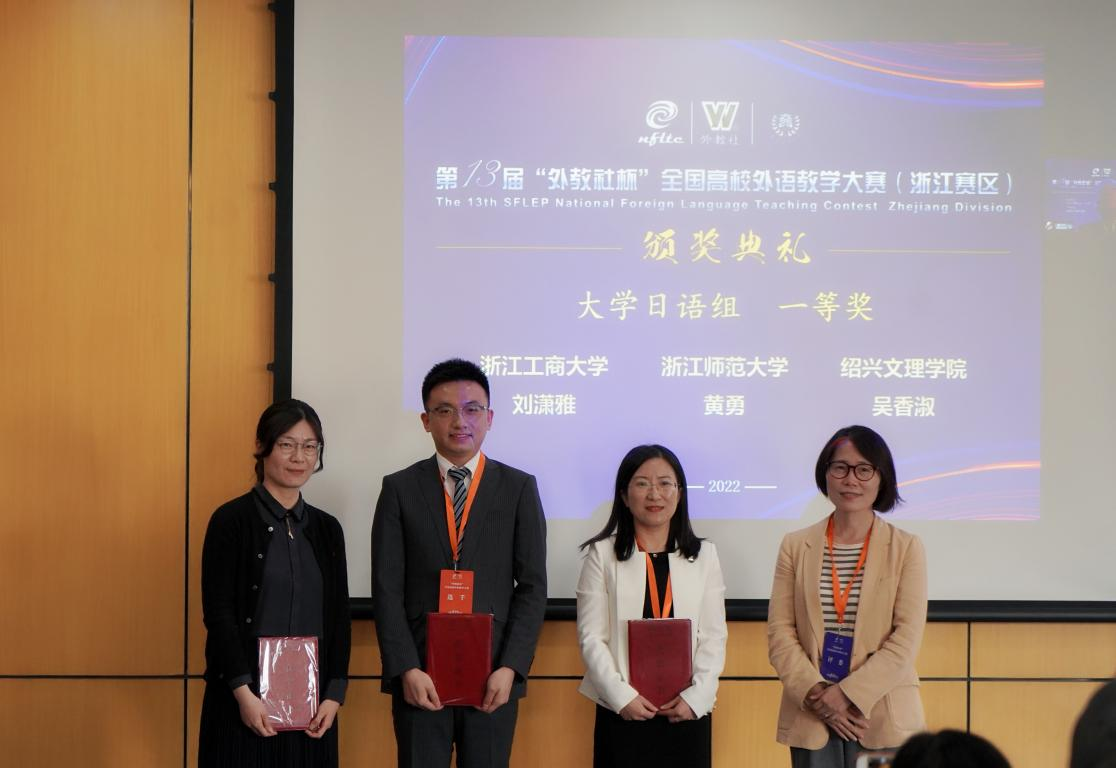 11月5日-6日,第十三届“外教社杯”全国高校外语教学大赛(浙江赛区)在浙江工商大学成功举办。外国语学院日语系吴香淑老师参加了大学日语组比赛并荣获大学日语组一等奖。