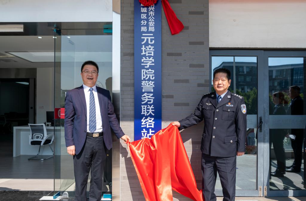 仪式上,陈均土与胡旭东共同为“绍兴市公安局越城区分局元培学院警务联络站”揭牌。
