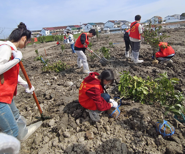 志愿者响应国家号召,树立尊重自然、顺应自然、保护自然的生态文明理念,于植树节来临之际,前往义务植树点种植树木,保护生态。