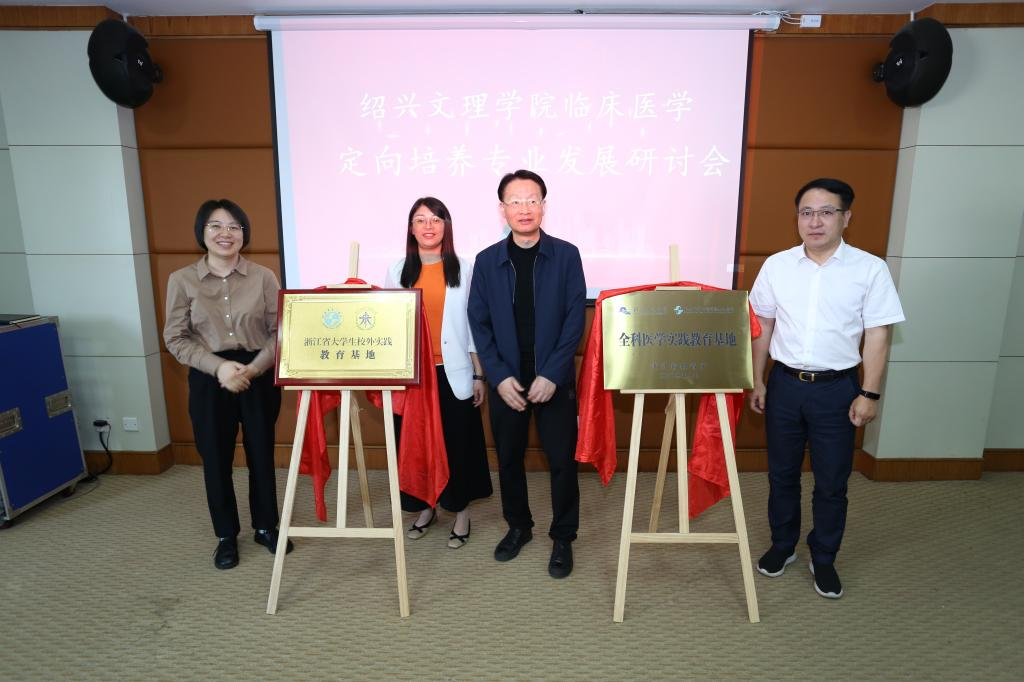 根据《浙江省教育厅办公室关于开展普通本科高校“十四五”省级重点建设实验教学示范中心和省级大学生校外实践教育基地建设工作的通知》要求,经学院申报、省教育厅审核,对医学院和绍兴市中心医院医共体总院联合申报的全科医学实践教育基地予以立项。郭航远、孙洁、屠传建、校教务处副处长孙燕共同为省“十四五”大学生全科医学校外实践教育基地揭牌。