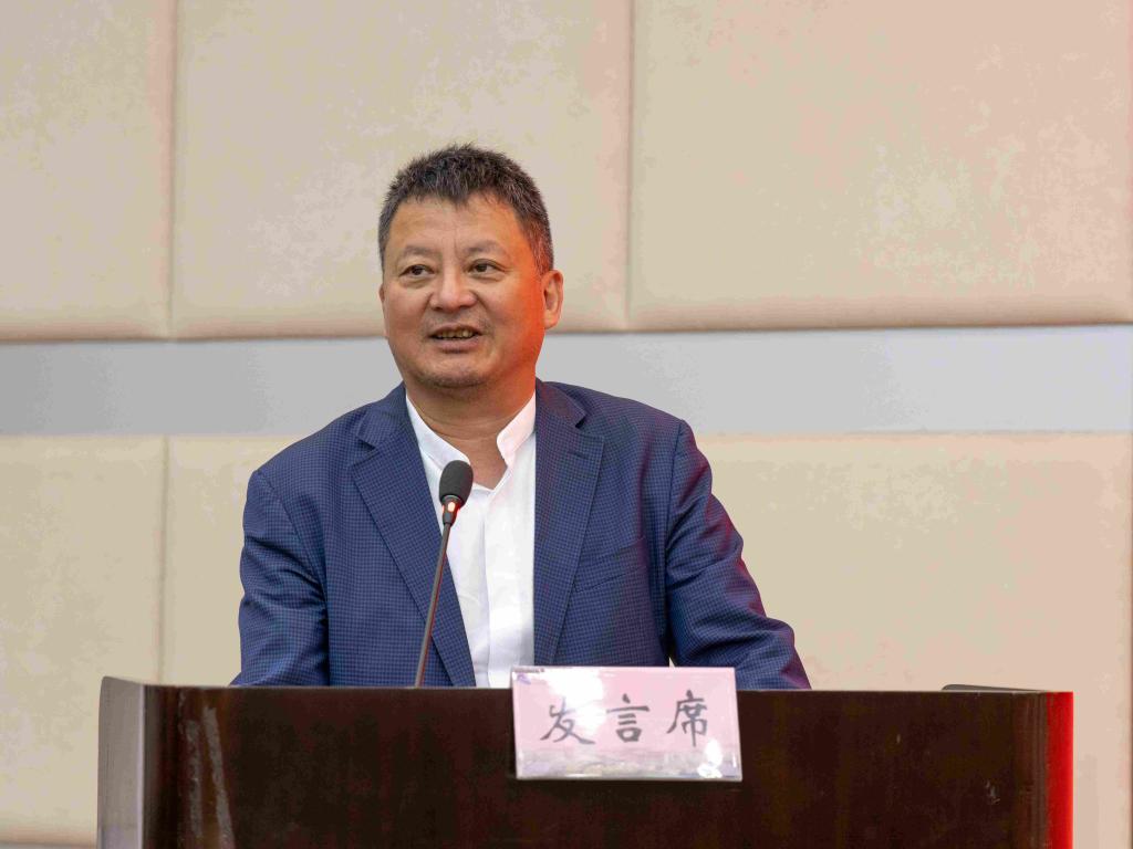沈赤为基础英语教育学会授旗。沈赤对基础英语教育学会的成立表示祝贺,对校友、老师的积极参与以及绍兴市教育局的支持和指导表示感谢。他指出,学校在“两横两纵”校友工作架构中既为校友提供服务,也为教学提供指导。他希望学会的成立能够为绍兴市基础英语教育搭建相互交流、相互促进的平台,为学校建设指明方向、准确定位,为基础英语教育奠定良好的基础。他对学会发展提出四点要求:一是要建设好,在今后工作中建章立制、加强管理和服务;二是要活动好,做好交流、指导等各项活动,发挥凝聚各方面力量和智慧的桥梁纽带作用;三是要服务好,在服务学会成员和单位中发挥积极作用,全面提升学会工作;四要发展好,进一步推动学会高质量发展,在发展过程中实现合作共赢。