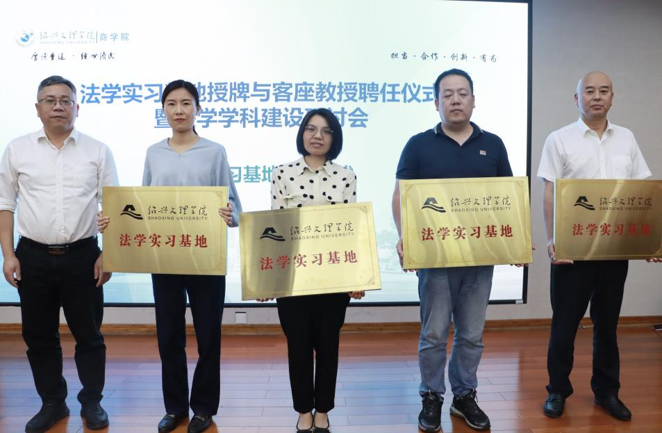 商学院院长王华锋在会议致辞中表示,法学实习基地授牌与客座教授聘任仪式,不仅是培养学生的需要,也是“开门办学”的具体体现,学院将全力做好各项保障工作,与实习基地和客座教授通力合作,共谋发展,共同为法治绍兴贡献力量。