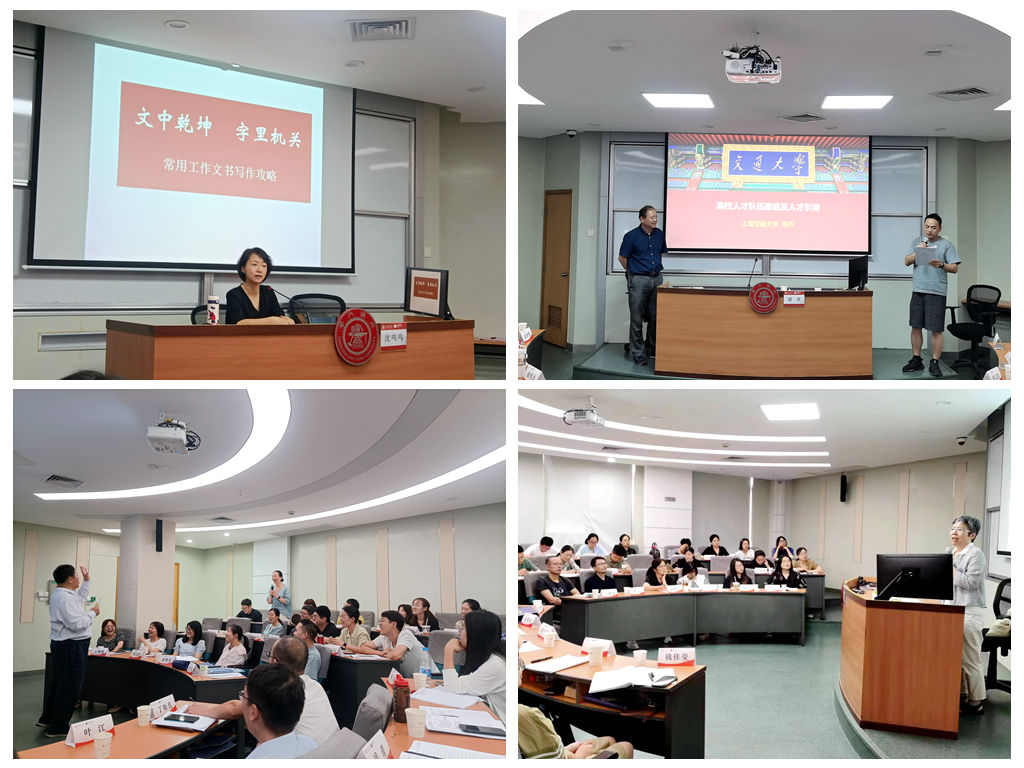 同济大学人文学院教师沈鸣鸣、上海交通大学物理学院党委书记梁齐、上海市政府合作交流办信息处原处长朱明、上海交通大学高等教育研究院原党总支书记刘少雪、上海市文联办公室主任钱春妹等5位专家,从“办文办会办事”的角度,为学员作会务组织、公文写作、人才队伍建设和高等教育研究等方面的专题报告。