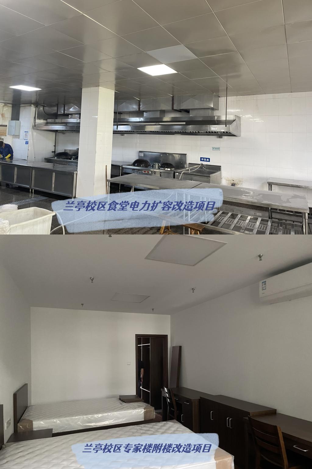 40余天紧张工期、68个项目同时开展,安全监管上百名施工人员,时间短、任务重。校园建设处源头进行专项管理,严把安全关、质量关和进度关,确保项目进程,紧盯时间节点,抢抓黄金期,把握关键期,倒排施工期,明确任务,压实责任,科学排布建设环节,有序推进项目施工。经过一个暑期的不懈努力,顺利完成美术楼、音乐楼、志廉楼、理工楼44间卫生间改造;粉刷学生宿舍1060间,修补公共区域超6000平米;图书馆新增插座200余个;实现兰亭餐厅117kw电力扩容;协同物业处理零星维修1511项等。