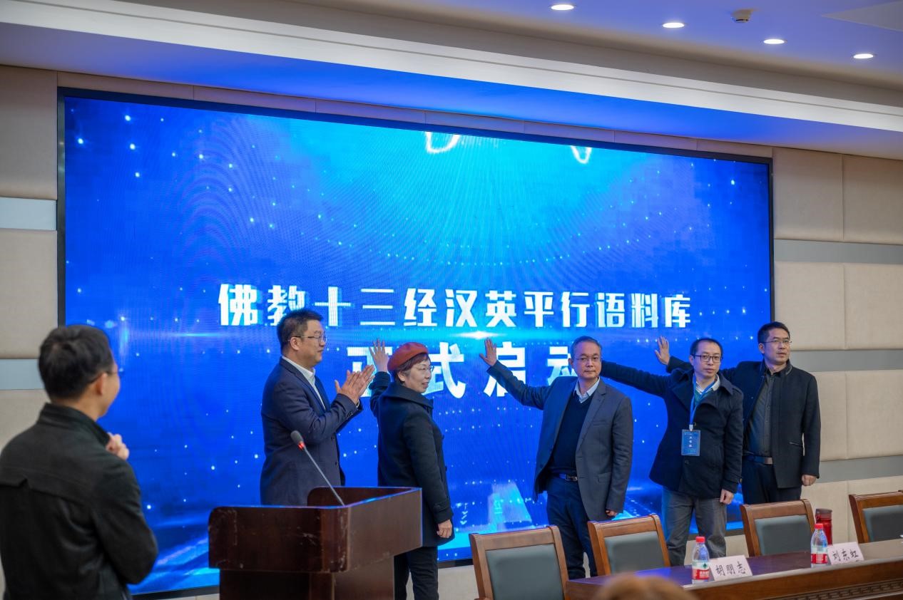 会上举行了“佛教十三经汉英平行语料库上线发布”仪式。陈均土、代建华等人共同开启“佛教十三经汉英平行语料库”。创建者马杰森老师介绍了语料库的创建原因、创建历程以及建设成果,展示了语料库对于中华典籍英译等教学、研究和实践的重要意义。