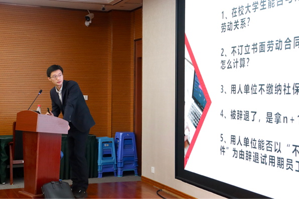 专家普法,“宪”进课堂。10月18日至12月4日期间,开设了5场“12.4宪法日”普法系列讲座。讲座主讲团由商学院教师、客座教授、律所合伙人等老师组成。“大学生就业陷阱及预防”“司法的公平与正义”等主题讲座吸引了全校数百名学生参与。通过系列讲座,同学们对于法治的内涵及如何在日常生活中学法用法、知法护法等内容有了更为全面的认识,并表示将进一步弘扬宪法精神,以实际行动带动全社会崇德向善、遵法守法。