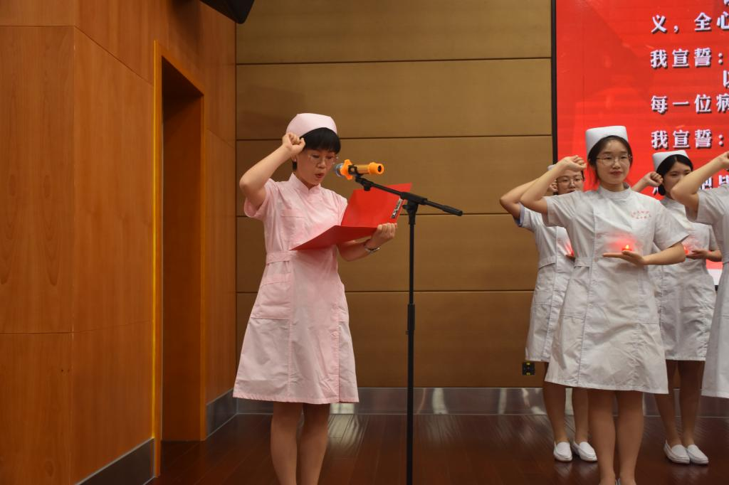 在2002届优秀校友吕巧霞的领誓下,全体护生举起右手,庄严宣誓,表达了献身护理事业,奉行革命的人道主义精神,坚守救死扶伤的信念,履行“保存生命、减轻痛苦、促进健康”的职责。