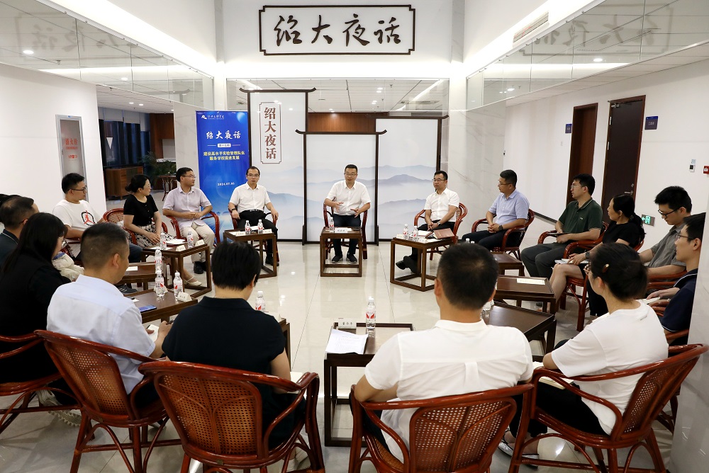 时值盛夏,万物并秀。7月5日晚,“绍大夜话”第十六期活动在行政楼三楼中庭举行。副校长胡云进与实验管理队伍代表面对面亲切交谈,共话实验管理队伍建设,共谋学校实验室事业发展。活动由资产设备与实验室管理中心主任王伟主持。