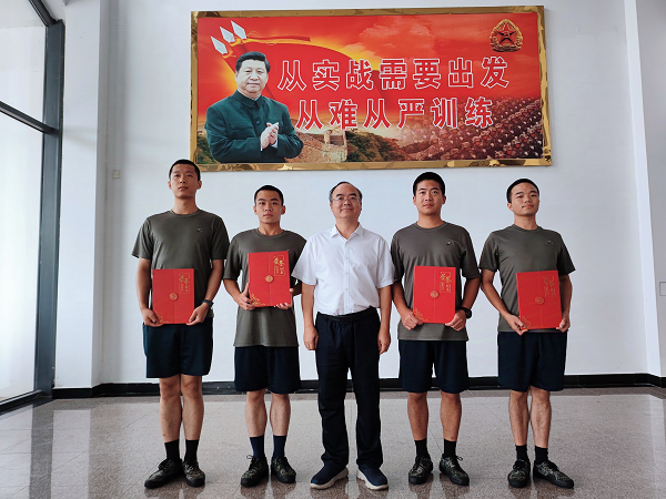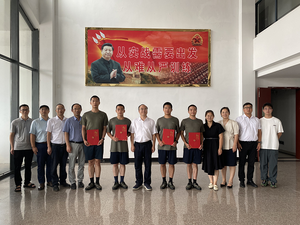 会上,今年秋季参军入伍的4位同学依次介绍了自己的情况,表达了自己通过学校入伍的原因以及未来在军营中的期望和目标。黄坚肯定了同学们参军报国的赤子之心,并依次为同学颁发光荣证,送上纪念品。