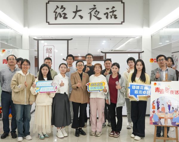 11月14日晚,“绍大夜话”第二十一期之“青春夜话”第十四期在行政楼三楼中庭举行。副校长赵浪平与2024级学生代表围绕“美丽校园初印象”主题,畅谈文理印象,共话美丽校园。办公室、学工部、基本建设处、后勤管理处、团委等相关部门负责人参加活动。