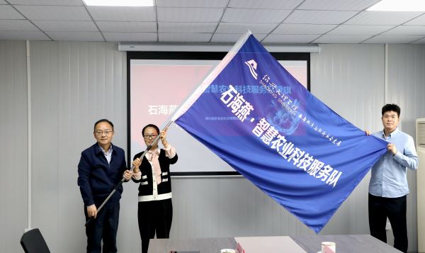 赵阳为“石海燕.智慧农业科技服务队”授旗。
