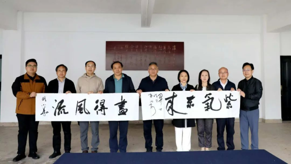 座谈会前,司家军一行实地参观了兰亭书法艺术学院展厅、留青堂竹雕篆刻工作室、装裱设计工作室、金石传拓工作室等教学活动场所。孟鸿声和兰亭书法艺术学院院长刘小华进行了书艺交流。