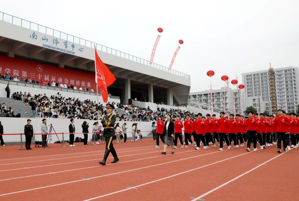 10月25日上午,校第三十届田径运动会在南山田径场开幕。校长赵阳,校党委副书记张宏,副校长柳国庆、陈均土、赵浪平、胡云进,校党委委员梁瑜、黄曼,以及校运动会组委会全体成员在主席台就坐。开幕式由柳国庆主持。