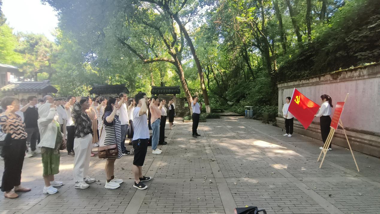 越城区府山街道党工委书记傅晓铭、马克思主义学院党委书记陈红、马克思主义学院党委副书记袁海平、府山街道机关党总支书记赵琴、附属医院第十一党支部书记傅月美以及各支部全体党员等齐聚清白泉参加活动。