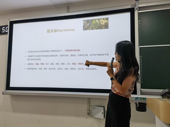 邹莹拥有英国葡萄酒与烈酒教育基金会(WSET)Diploma品酒师、WSET官方认证讲师和考评官,以及中国国家高级品酒师(白酒、葡萄酒、黄酒)等多项权威资质。讲座中,她立足深厚的专业知识,从葡萄酒种类、常见酿酒葡萄品种、核心产区知识以及侍酒礼仪切入,系统梳理了中国葡萄酒的发展脉络。邹莹深入解析了葡萄酒与中国传统文化的深层关联,为现场学员搭建起理解中外酒文化、特别是中国葡萄酒文明的桥梁。